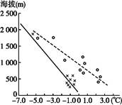 4、单选题 下图为“我国东部某山区南北坡1月和7月平均气温随海拔的变化图”,其中各点为不同海拔实测得到的气温值,线段代表不同坡向的气温变化趋势。完成小题。