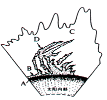 (2)用图中的字母填空:太阳黑子活动发生在 层,耀斑出现在 层,它们的活动周期为 年。太阳风对地球的影响主要表现在受地球磁场的作用,在地球高纬地区出现 。