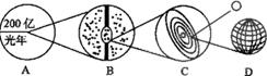 1.图中C为________。小行星带所属系统是________图。仙女座河外星系的级别与________图相同。月球所在的最低一级系统是________图,其中心天体是________。总星系指图________。