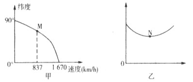 3、单选题 读“地球自转线速度随纬度变化图”(甲)和“地球公转速度年变化图”(乙),回答1~2题。