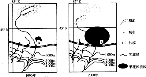 2、综合题 ? 下面两图分别是该区域不同年份的地理示意图。其中A地区为“汇源番茄汁”的主要原料产地。依据图像,结合所学地理知识回答问题。