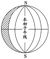 1、单选题  读图(阴影部分表示黑夜),完成小题。