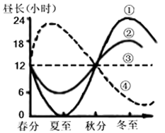 3、单选题 读①②③④四地年内昼长变化曲线图,回答下列题。