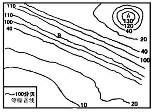 图中可以得出该地噪声源为点源A与线源B,只有A项符合题意。