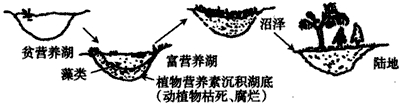 2、综合题  读湖泊沼泽化过程示意图,回答下列问题。