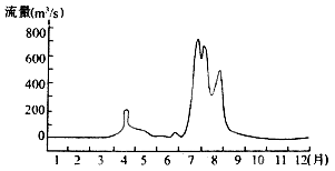 【小题2】该河有两个汛期,春季和夏季,应该是位于我国东北地区的河流,主要补给水源为春季的积雪融水和夏季的大气降水,年径流量不大,冬季径流量为零,即断流