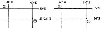 1、单选题 下图中①②③④是世界四条大河入海口附近。有关四条大河的所在地叙述正确的是( )