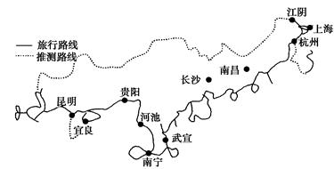 4、单选题 读徐霞客51~55岁旅行路线示意图,回答小题。