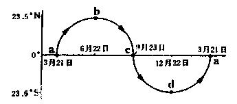 1、综合题 下图是一年中太阳直射点移动的纬度变化示意图,用图中字母解答:(10分)