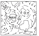 【小题3】以③为中心的环流圈位于非洲与澳大利亚大陆之间,为南印度洋中低纬海区,是南半球的副热带环流。其中的一支是西澳大利亚寒流,在北印度洋,洋流流向会随季节而改变。故C正确。
