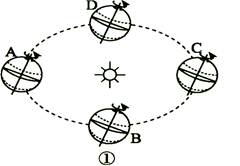 2、综合题 观察我国某地(40°N)屋内朝南窗户的阳光照射情况以及地球公转示意图(图中A、B、C、D代表二分二至点),据此回答下列问题。(10分)
