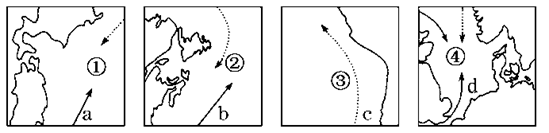 【小题2】洋流a代表日本暖流,b代表墨西哥湾暖流,c代表秘鲁寒流,d代表北大西洋暖流;寒暖流交汇处,营养物质上泛,饵料丰富。