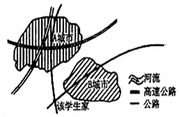 3、单选题 读某学生所在区域的城镇分布简略示意图,完成下列各题