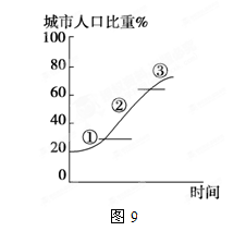 1.当前,多数发展中国家和发达国家城市化进程所处的阶段分别是2.图中②阶段城市可能发生的现象有