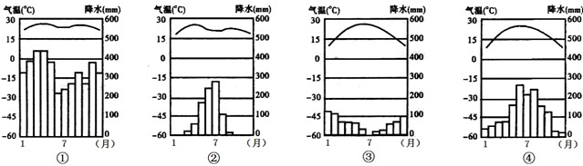 (3) a地气候类型属于下图中的________,其形成的原因是:________________ (3分)