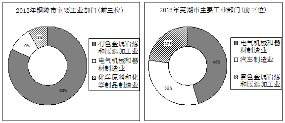 材料二:2013年铜陵、芜湖两市居前三位的主要工业部门