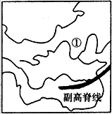 4、单选题 ? 副高的强弱、进退几乎决定着我国东部地区主要雨带的分布以及水旱灾害的发生。读“我国某月份副高脊线位置图”,完成1—2题。