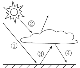 【小题2】“十雾九晴”,秋冬季节晴朗的夜晚,往往气温更低,这与上图中的哪一过程较弱有关( )