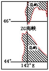 4、单选题 右图中ZG海峡的最冷月平均水温北侧为-1.7℃,南侧为2.1℃。8月份水温北侧为5~8℃,南侧为15~20℃。读图回答下题。