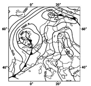2、单选题 2014年3月22日-4月1日,习近平应邀对欧洲部分国家进行国事访问。下图是访问期间某日欧洲部分地区海平面等压线分布图,回答下列各题。