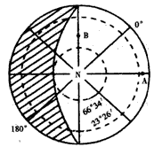 1、综合题 下图为“北半球光照示意图”,图中阴影部分表示夜半球。读图回答下列问题。