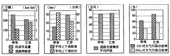 小题1:关于甲、乙两城市的交通和污染状况的叙述,正确的是