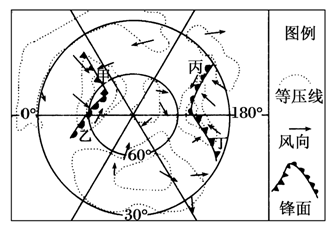 1、单选题 下图是某日极地附近风向示意图,据此回答1-2。