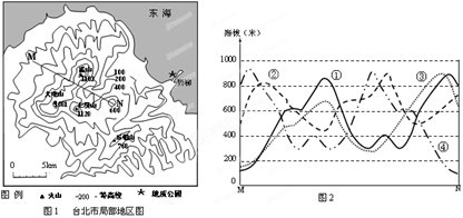 小题2:游客从M走到N,其所经地区地势起伏与图2所示剖面线对应的是(?)