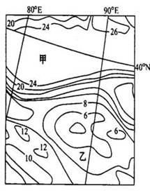 小题1:导致甲、乙两地气温差异的主要原因是:?(?)