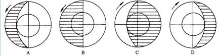 3、单选题 下列四幅图中,反映北半球冬至日的是(图中阴影部分表示黑夜)