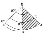 3、综合题  (7分)图中,箭头表示地球自转方向,OB为本初子午线,非阴影部分为黑夜,读图回答下列问题。