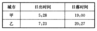 1、单选题  下表为我国甲、乙两城市某日日出、日落时间(北京时间)统计表,据此回答1—2题。