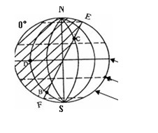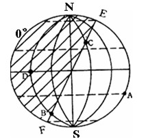 (3)图中EF是________(晨、昏)线,它与地轴之间的最大夹角为________。