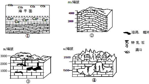 2、单选题 下图是云贵高原形成与发育过程示意图,读图回答题。