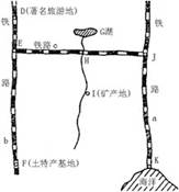 5、综合题 (4分)如下图所示,铁路a沿线经济发达,铁路b沿线经济欠发达,G湖农业发达,水灾频繁。新建铁路c(E—H—J),全长300千米。铁路c的社会经济影响有(从下列选项中选出四个正确项,将其代号填入空格):______,______,______,______。