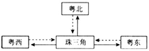 2、单选题  读“珠三角与周边地区区域合作示意图”,结合所学知识,完成1~2题。