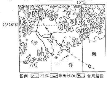 (2)该台风在A、B两地引发的主要次生灾害有何不同?说明B地预防这些次生灾害的工程措施。(6分)