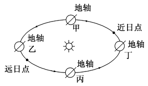 【小题1】根据图中地轴倾斜方向和地球公转方向可知,甲为春分日,乙为夏至日,丙为秋分日,丁为冬至日。