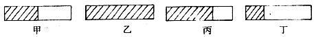 4、单选题 如图所示为6月22日甲、乙、丙、丁四个地点昼夜长短比例示意图(阴影部分表示夜长),回答问题。