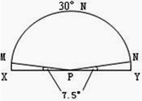 2、综合题  图为部分30°N的纬线,P为北极点,M.N分别为晨线和昏线与30°N的纬线的交点,∠MPX=∠NPY=7.5°,PY为0°经线,此时纬度为80º纬线的某地,当地方为0时时,太阳正好位于地平线上。完成下列各题。(8分)