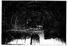 4、单选题  下图是我国某天文爱好者夜晚九点钟开始采用连续曝光技术拍摄到的寺庙照片,照片中的弧线为恒星视运动轨迹。拍摄者观测北极星的地平高度约45°。据此完成下列小题。
