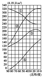 5、单选题  读“北半球太阳辐射的纬度分布图”。分析回答1—3题。