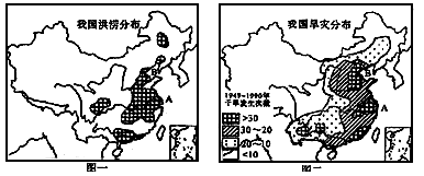 4、综合题 图为我国旱涝灾害分布示意图,读图分析回答下列各题。