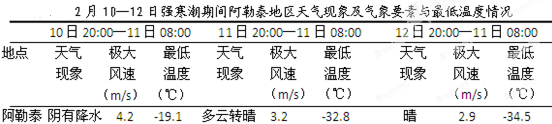 (1)简述此次强寒潮期间阿勒泰地区天气现象的变化过程。(4分)