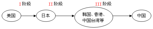 1、单选题  该图表示某产业在亚太地区的历史发展过程,完成问题。