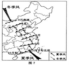 4、单选题  中国2010年上海世博览会于5月1日正式开园,会期184天。图7为我国东部地区一般年份夏季风进退及锋面位置示意图。回答问题。
