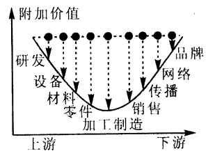 1、多选题 “微笑曲线”是台湾宏基公司董事长施振荣先生最早提出的,它起初被用于说明电脑行业不同环节与所实现的附加值之间的关系,后来被广泛应用于其他领域。读“微笑曲线” 图,回答1~2题