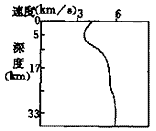 1、单选题 下图是某地地震波传播速度随深度变化状况,该地莫霍面大约位于地下