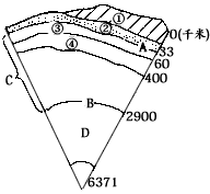 (1)图中字母A是_________界面,B是_________界面,在A界面横坡合纵波的传播速度突然________,