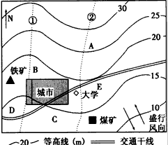 (2)图中____点适合建自来水厂,____点适合建钢铁厂,汽车贸易店和家具城布置在靠近____点的地方